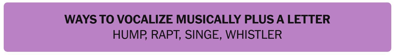 - WAYS TO VOCALIZE MUSICALLY PLUS A LETTER – HUMP, RAPT, SINGE, WHISTLER