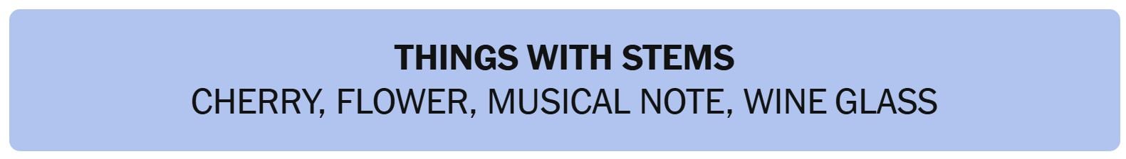 - Hint 4: One group of words is “THINGS WITH STEMS“.