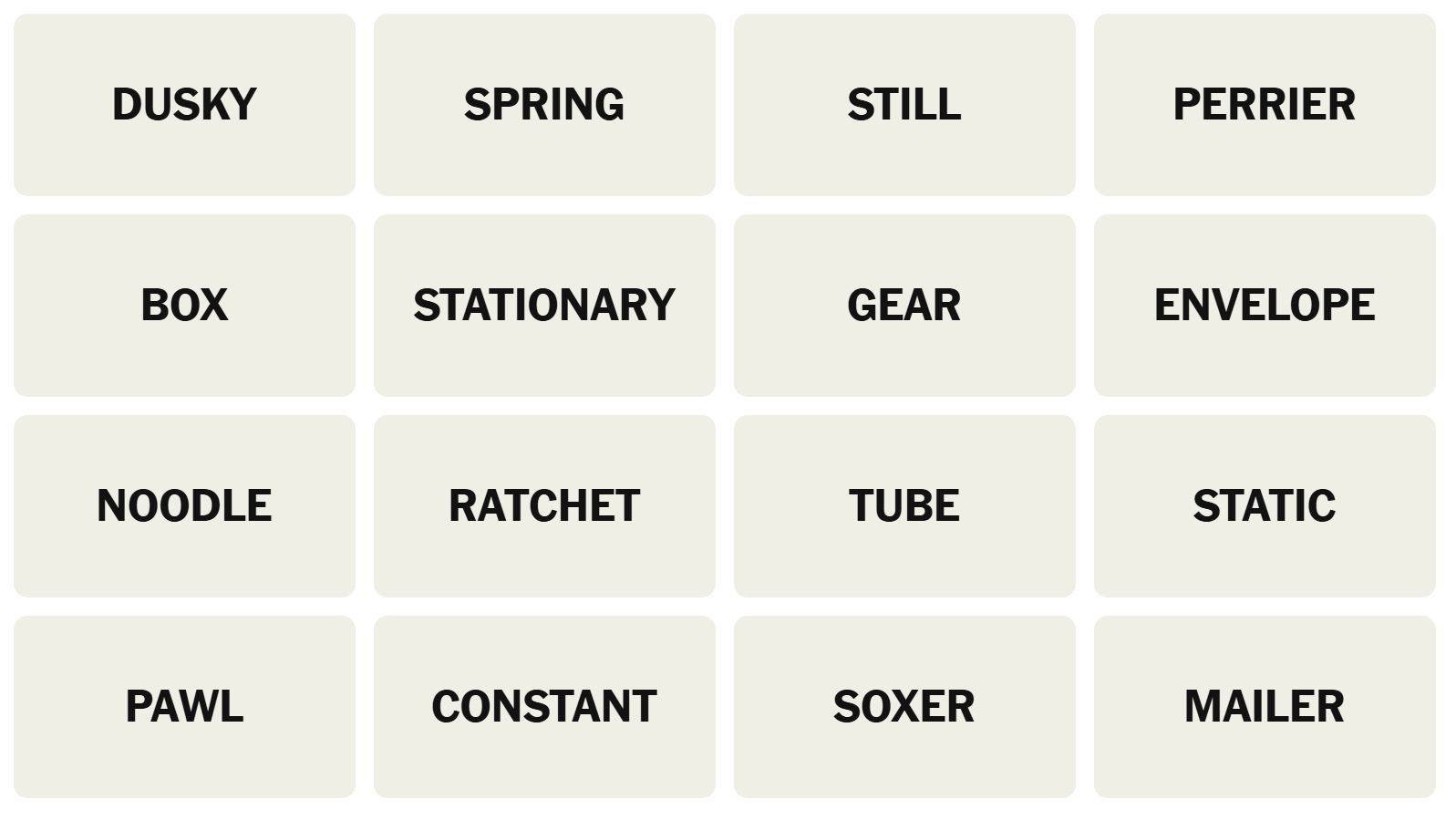 There are sixteen words for the Connection puzzles, which are: