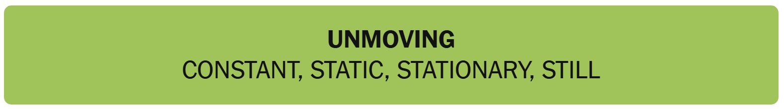 - UNMOVING – CONSTANT, STATIC, STATIONARY, STILL