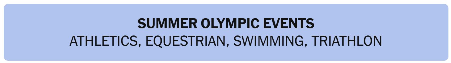 - SUMMER OLYMPIC EVENTS – ATHLETICS, EQUESTRIAN, SWIMMING, TRIATHLON