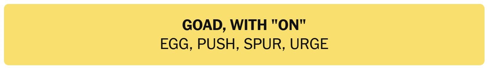 - GOAD, WITH “ON” – EGG, PUSH, SPUR, URGE