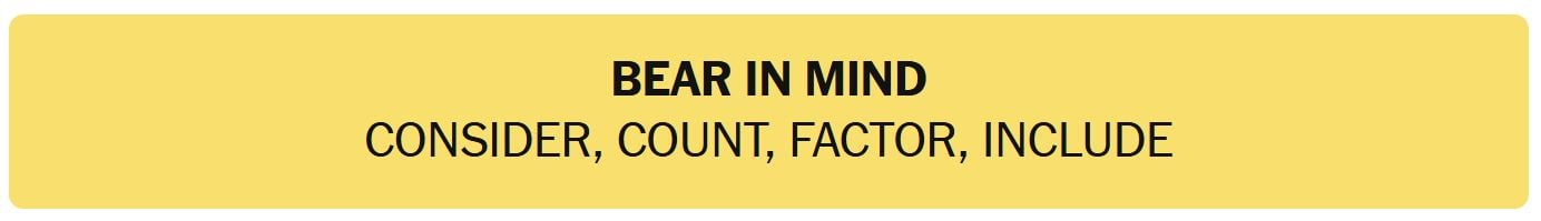 - BEAR IN MIND – CONSIDER, COUNT, FACTOR, INCLUDE