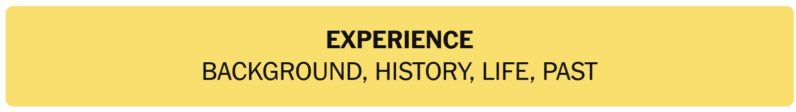 • EXPERIENCE – BACKGROUND, HISTORY, LIFE, PAST