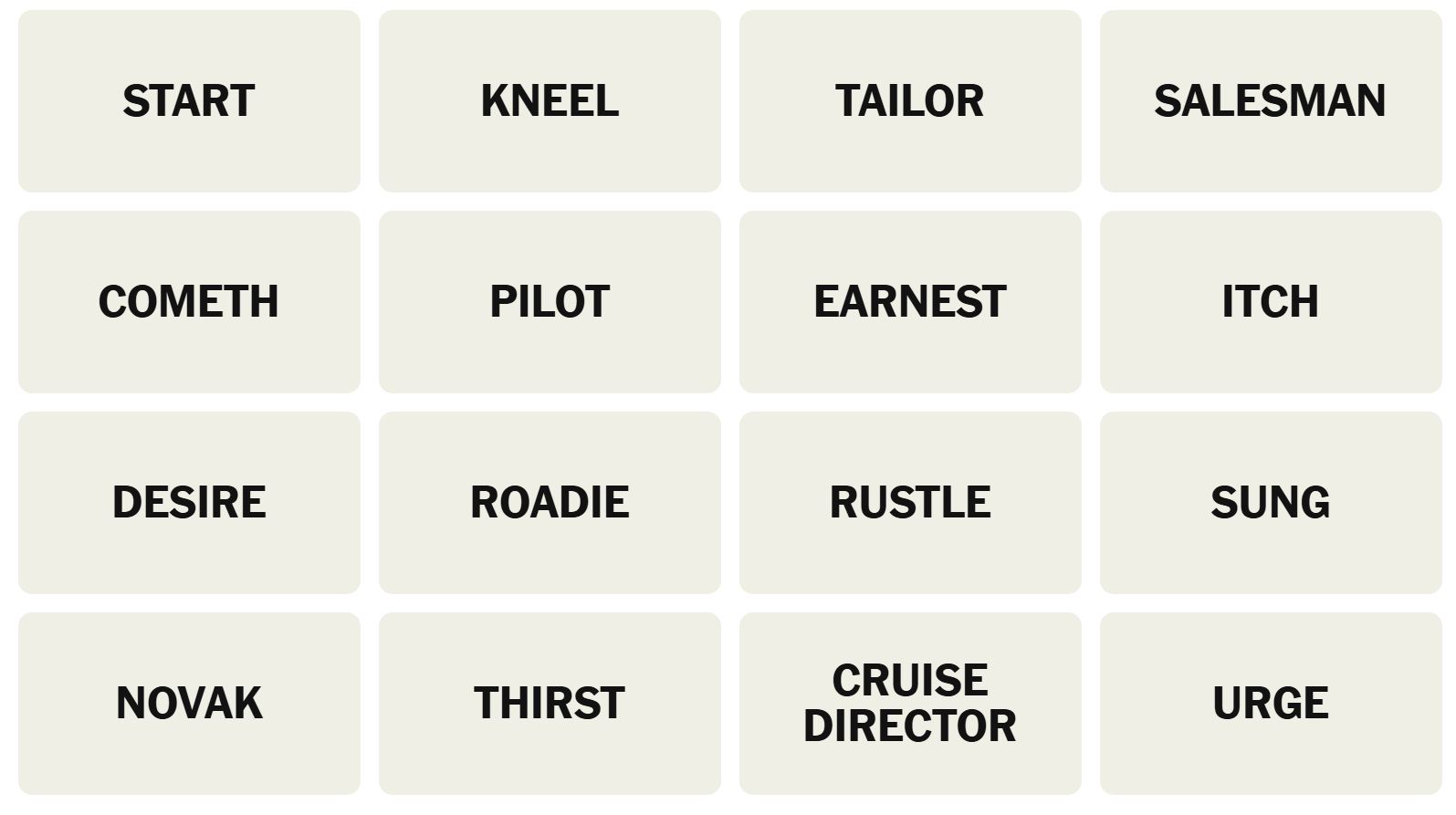 There are sixteen words for the Connection puzzles, which are: