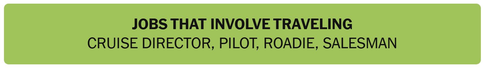 • JOBS THAT INVOLVE TRAVELING – CRUISE DIRECTOR, PILOT, ROADIE, SALESMAN