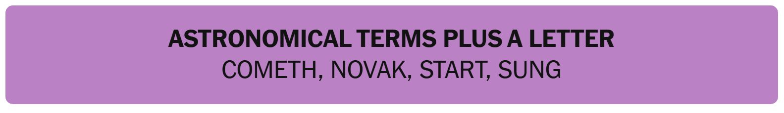 • ASTRONOMICAL TERMS PLUS A LETTER – COMETH, NOVAK, START, SUNG