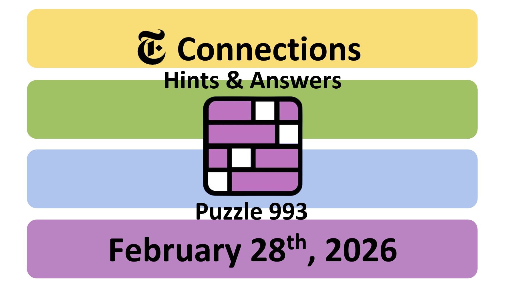 Here are the answers for the NYT Connections puzzle #993 today, released on February 28th, 2026, and some hints to help you solve them.