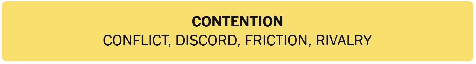 • CONTENTION – CONFLICT, DISCORD, FRICTION, RIVALRY