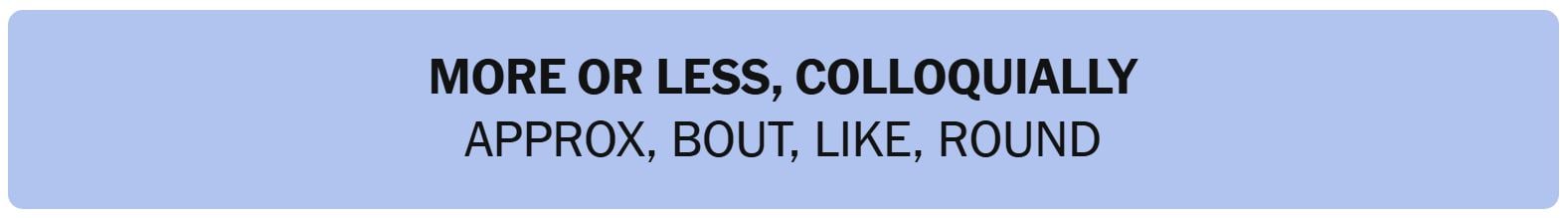 • MORE OR LESS, COLLOQUIALLY – APPROX, BOUT, LIKE, ROUND