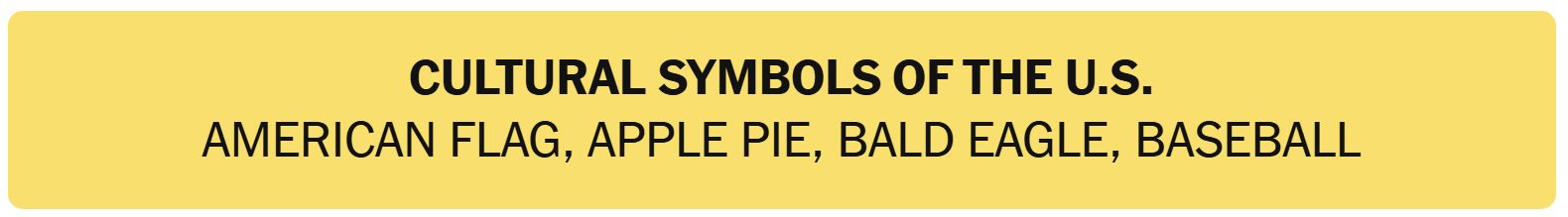 - CULTURAL SYMBOLS OF THE U.S. – AMERICAN FLAG, APPLE PIE, BALD EAGLE, BASEBALL