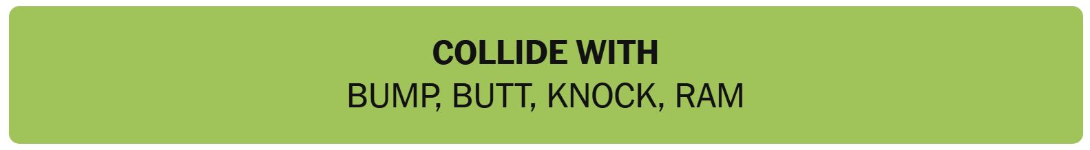 - COLLIDE WITH – BUMP, BUTT, KNOCK, RAM