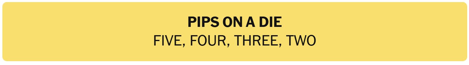 - PIPS ON A DIE – FIVE, FOUR, THREE, TWO