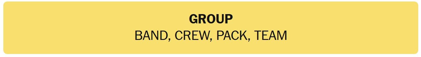 - GROUP – BAND, CREW, PACK, TEAM