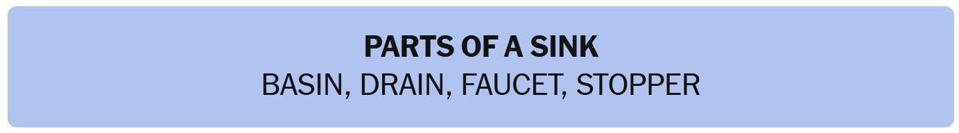 - PARTS OF A SINK – BASIN, DRAIN, FAUCET, STOPPER