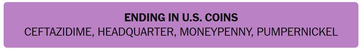 - ENDING IN U.S. COINS – CEFTAZIDIME, HEADQUARTER, MONEYPENNY, PUMPERNICKEL