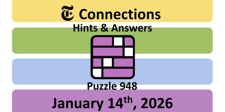 Here are the answers for the NYT Connections puzzle #948 today, released on January 14th, 2026, and some hints to help you solve them.