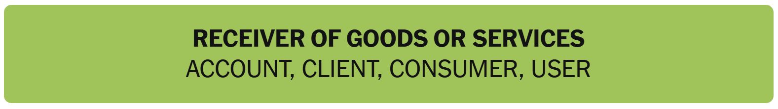 - RECEIVER OF GOODS OR SERVICES – ACCOUNT, CLIENT, CONSUMER, USER