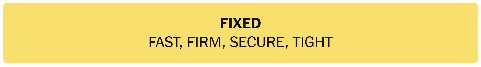 - FIXED – FAST, FIRM, SECURE, TIGHT