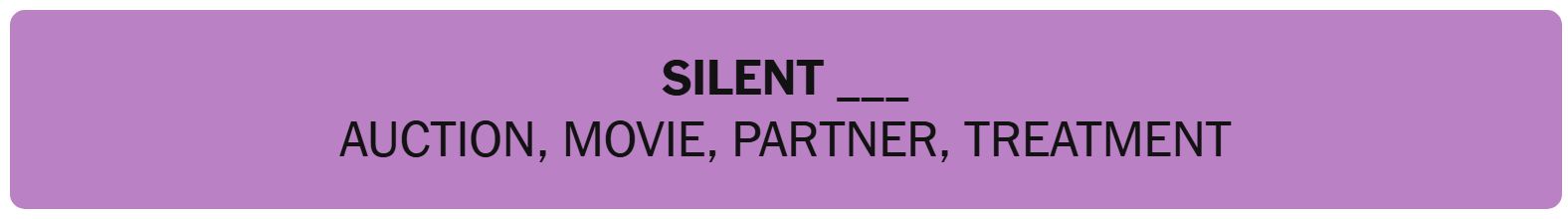 - SILENT ____ – AUCTION, MOVIE, PARTNER, TREATMENT