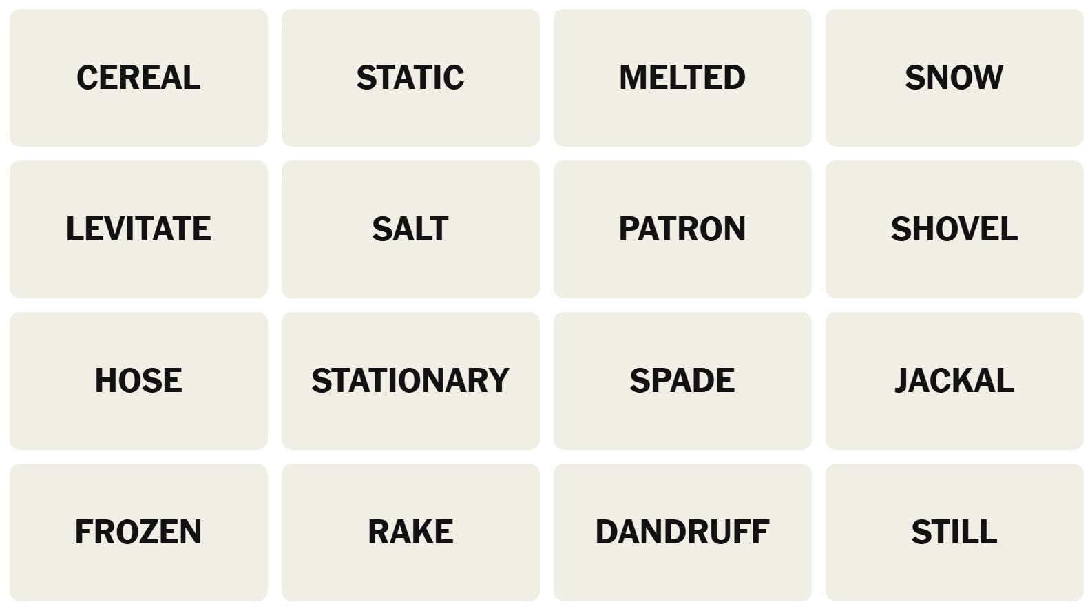 There are sixteen words for the Connection puzzles, which are: