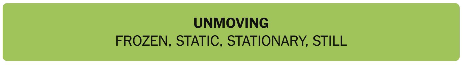 - UNMOVING – FROZEN, STATIC, STATIONARY, STILL