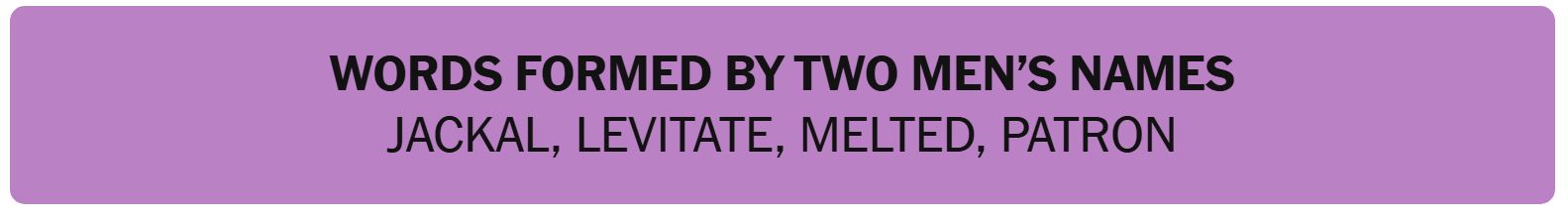 - WORDS FORMED BY TWO MEN’S NAMES – JACKAL, LEVITATE, MELTED, PATRON