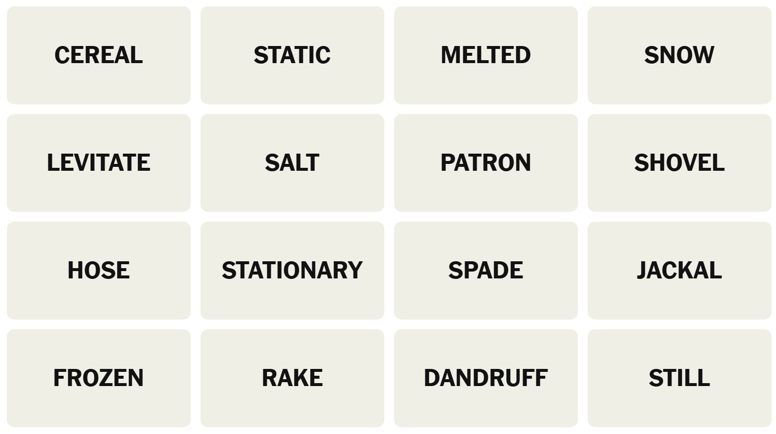 There are sixteen words for the Connection puzzles, which are: