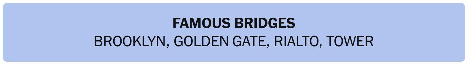 - FAMOUS BRIDGES – BROOKLYN, GOLDEN GATE, RIALTO, TOWER