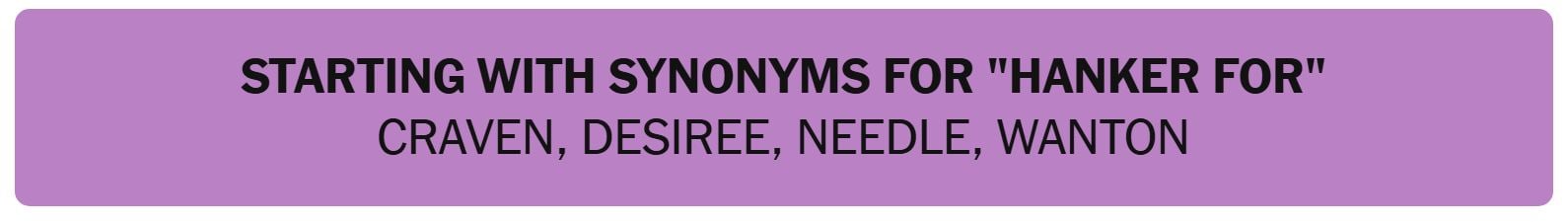 - STARTING WITH SYNONYMS FOR “HANKER FOR” – CRAVEN, DESIREE, NEEDLE, WANTON