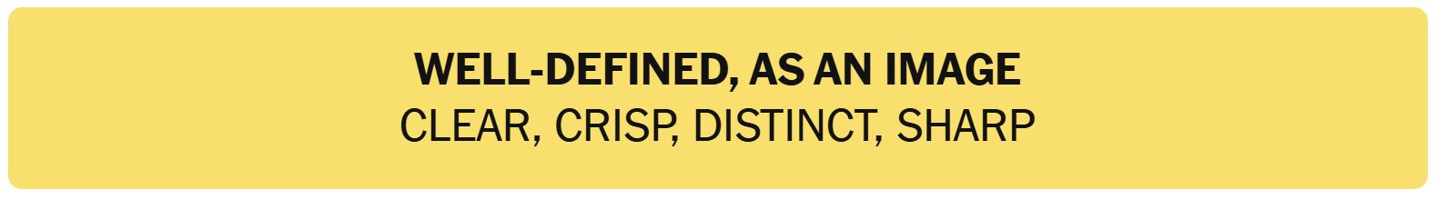 - WELL-DEFINED, AS AN IMAGE – CLEAR, CRISP, DISTINCT, SHARP