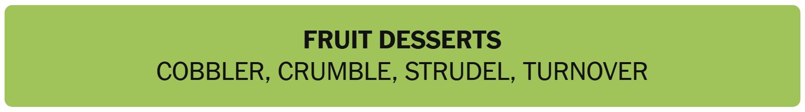 - FRUIT DESSERTS – COBBLER, CRUMBLE, STRUDEL, TURNOVER