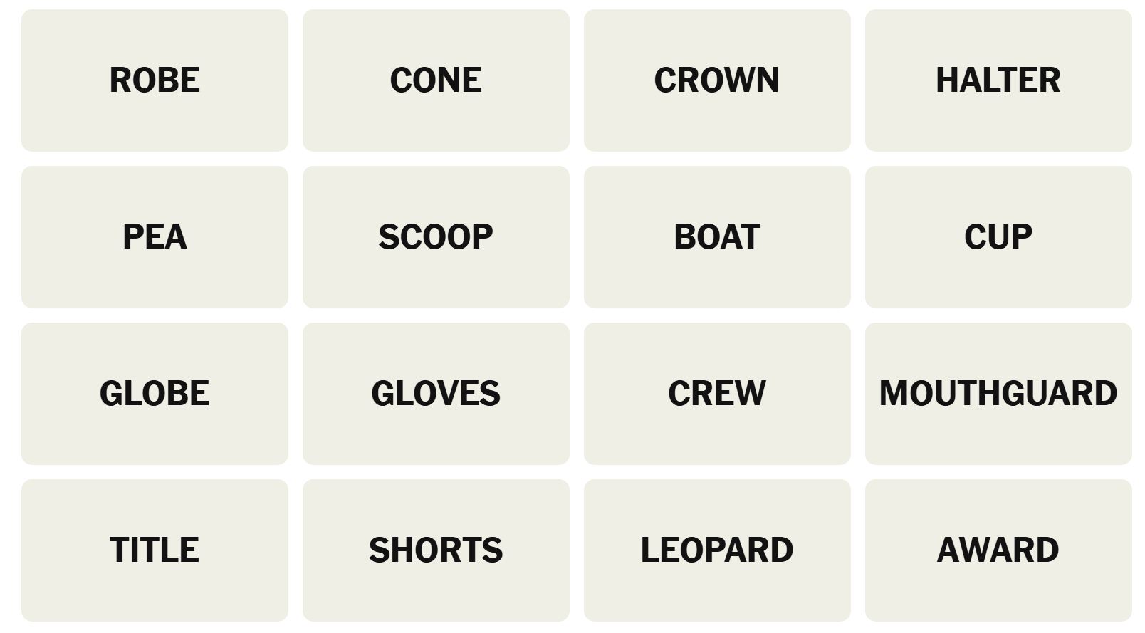 There are sixteen words for the Connection puzzles, which are: