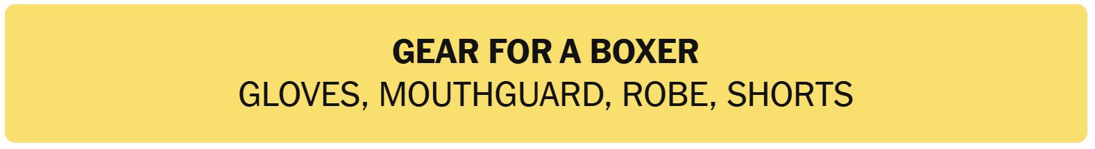- GEAR FOR A BOXER – GLOVES, MOUTHGUARD, ROBE, SHORTS