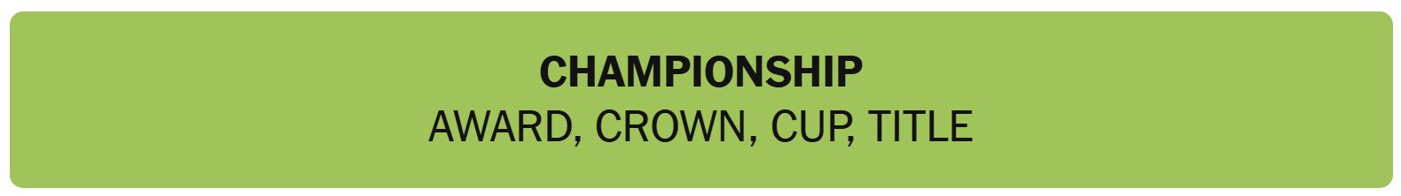 - CHAMPIONSHIP – AWARD, CROWN, CUP, TITLE