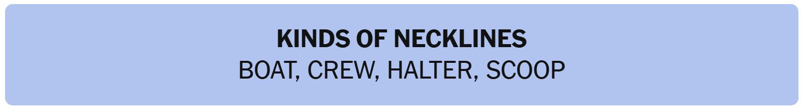 - KINDS OF NECKLINES – BOAT, CREW, HALTER, SCOOP