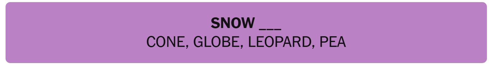 - SNOW __ – CONE, GLOBE, LEOPARD, PEA