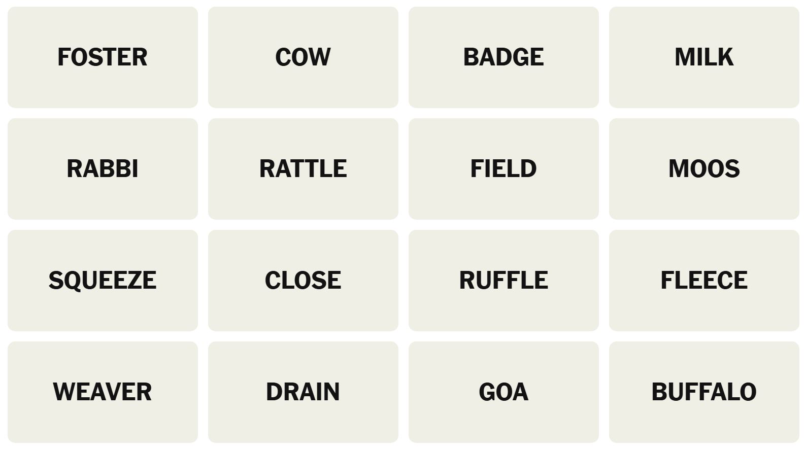 There are sixteen words for the Connection puzzles, which are: