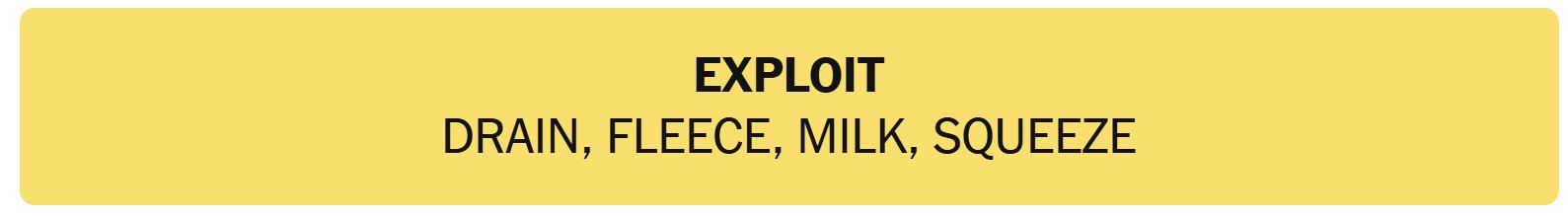 • EXPLOIT – DRAIN, FLEECE, MILK, SQUEEZE