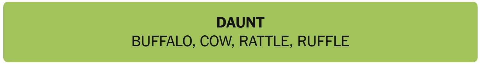 • DAUNT – BUFFALO, COW, RATTLE, RUFFLE