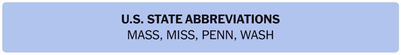 • U.S. STATE ABBREVIATIONS – MASS, MISS, PENN, WASH