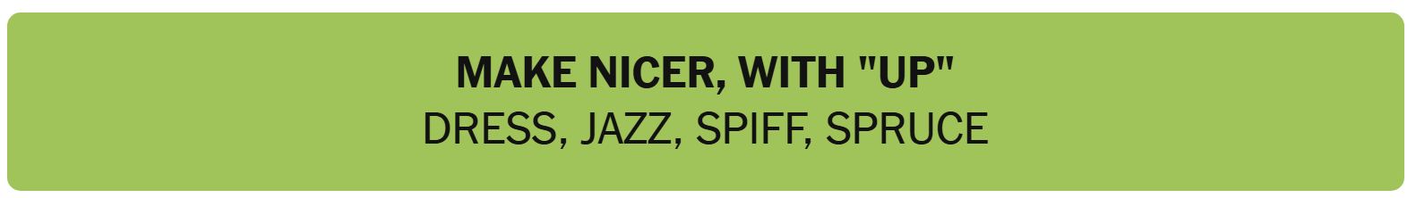 - MAKE NICER, WITH “UP” – DRESS, JAZZ, SPIFF, SPRUCE