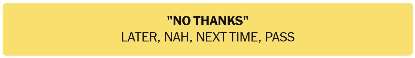 - “NO THANKS” – LATER, NAH, NEXT TIME, PASS