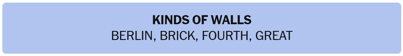 - KINDS OF WALLS – BERLIN, BRICK, FOURTH, GREAT