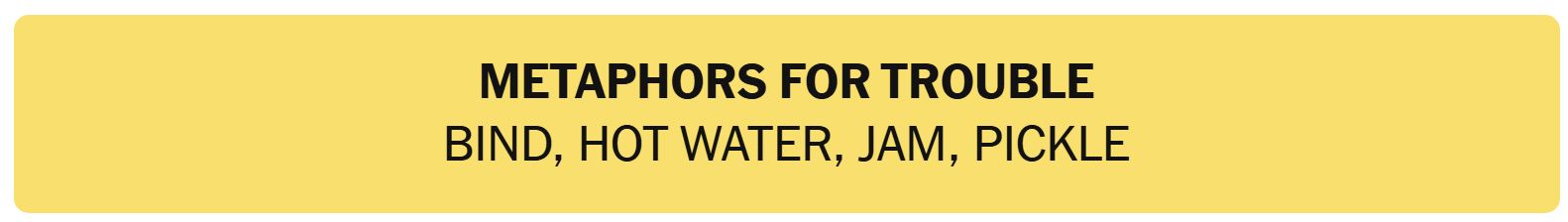 - METAPHORS FOR TROUBLE – BIND, HOT WATER, JAM, PICKLE