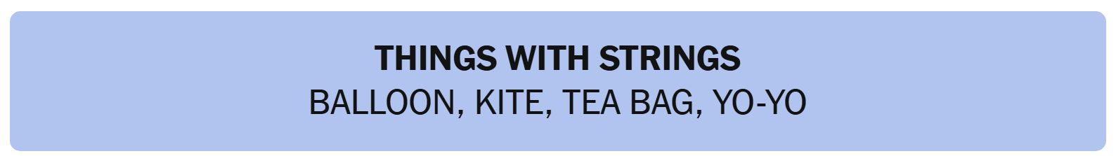 - THINGS WITH STRINGS – BALLOON, KITE, TEA BAG, YO-YO
