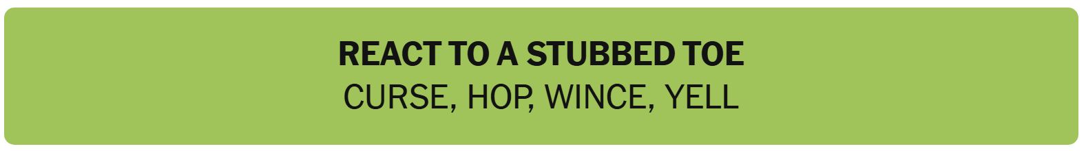 - REACT TO A SUBBED TOE – CURSE, HOP, WINCE, YELL