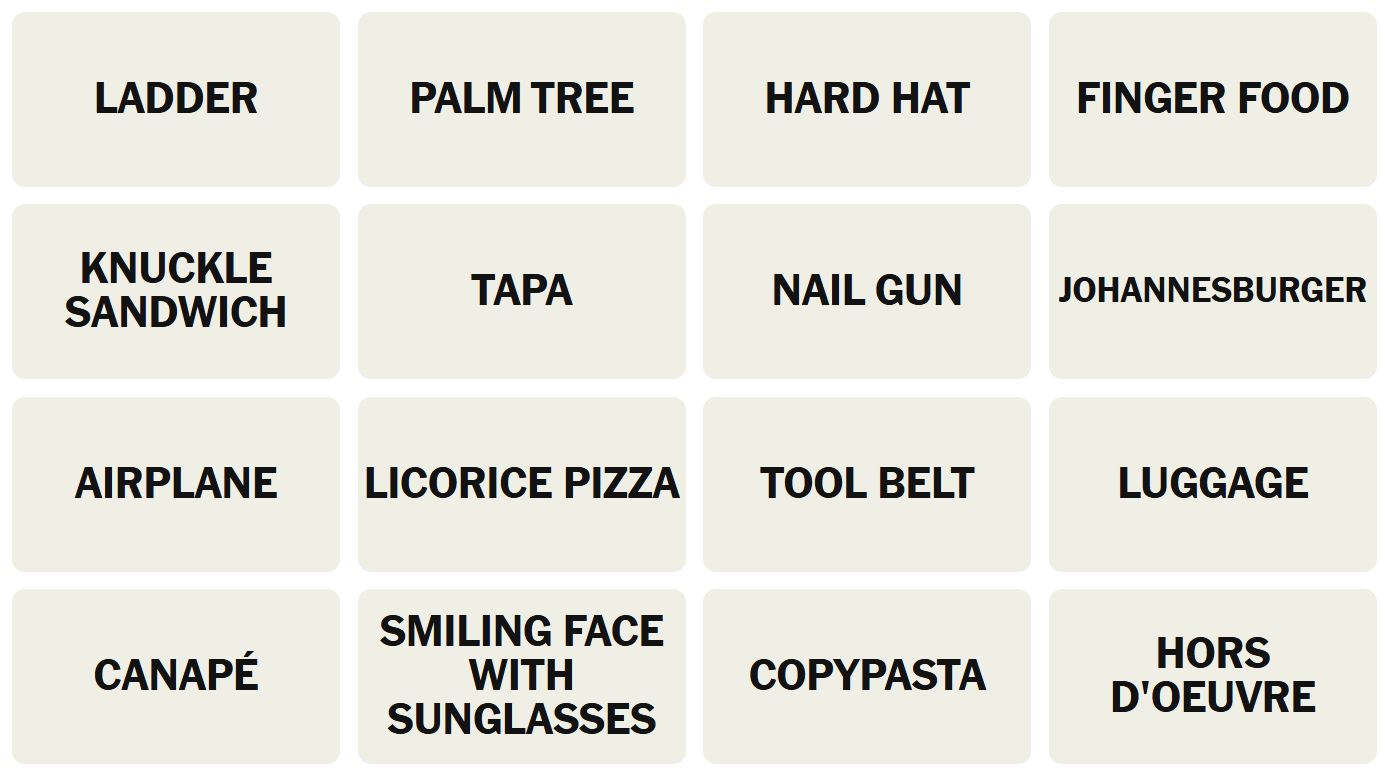 There are sixteen words for the Connection puzzles, which are: