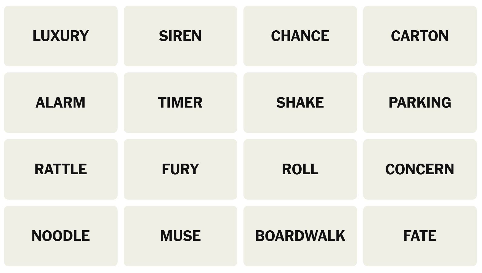 There are sixteen words for the Connection puzzles, which are: