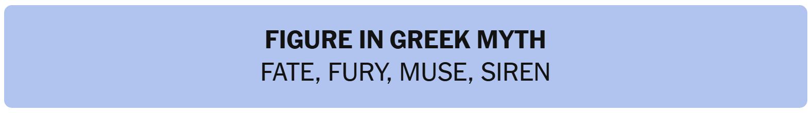 - FIGURE IN GREEK MYTH – FATE, FURY, MUSE, SIREN